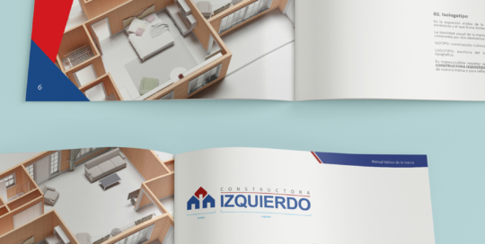Creación de Logotipo y diagramación de manual básico de la marca. Cliente: CONSTRUCTORA IZQUIERDO Cerrar